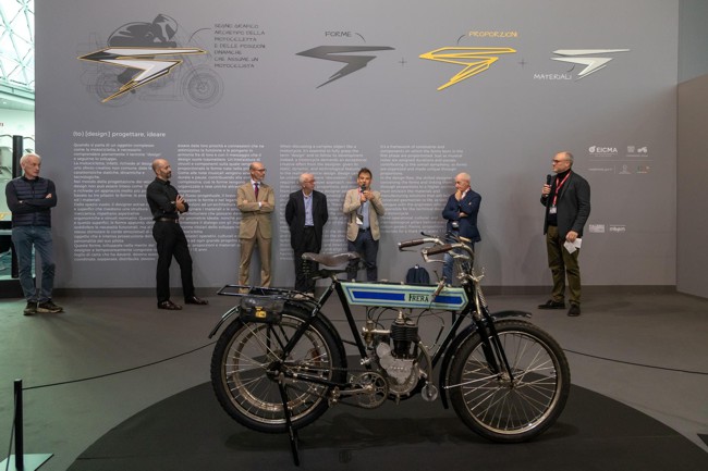 All’ingresso dell’Esposizione del 1914, i primi due spazi erano allora occupati dai due costruttori italiani Frera e Stucchi. E, idealmente, inizia ancora da lì anche la mostra “Eicma: 110 anni di design a due ruote” di EICMA 2024: è infatti una Frera 2 ¼ Hp Lusso del 1914 la prima moto che incontrano i visitatori e che precede un percorso espositivo di 36 motociclette che si sviluppa nelle tre sezioni forme, proporzioni, materiali.