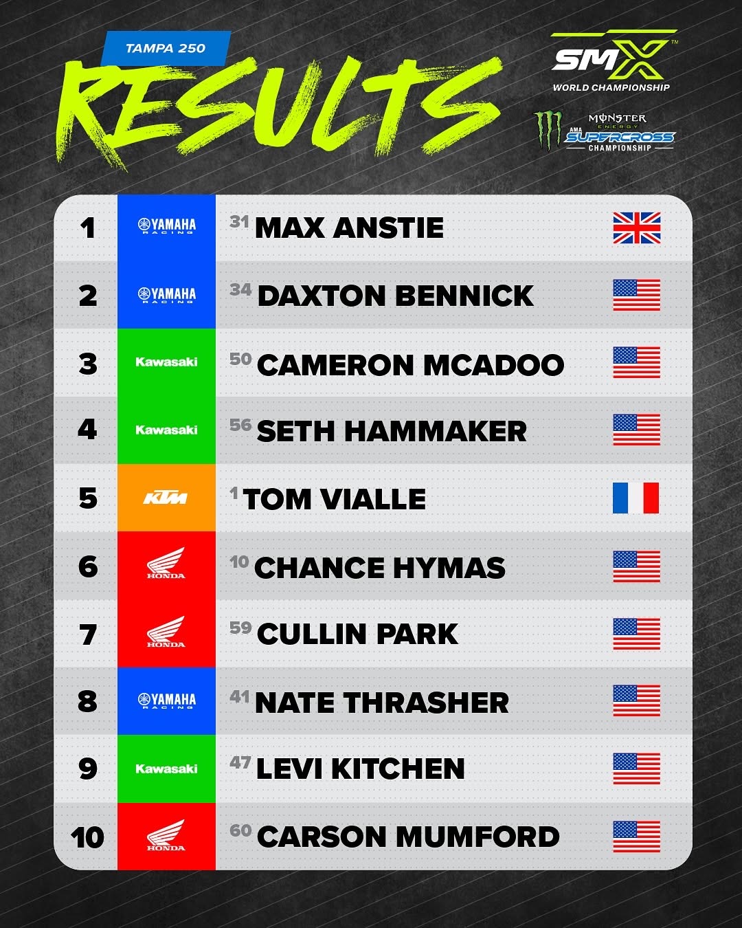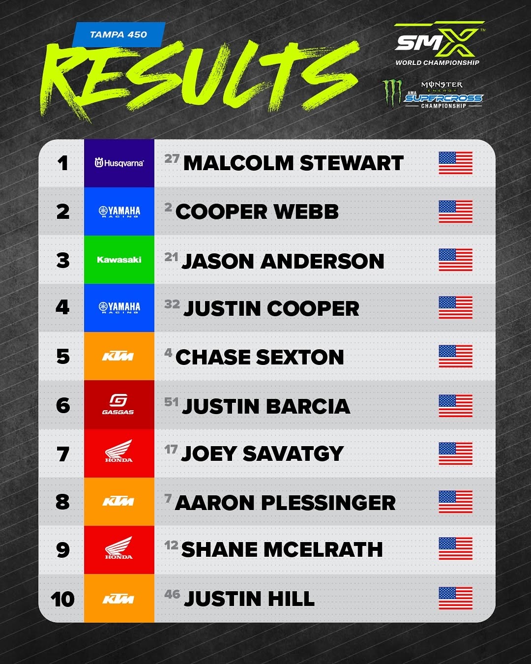 Il Supercross arriva a Tampa in Florida, al Raymond James Stadium, dove giocano i Tampa Bay Buccaneers della NFL, stadio che ospita eventi di ogni tipo e può contenere fino a 70.000 spettatori.