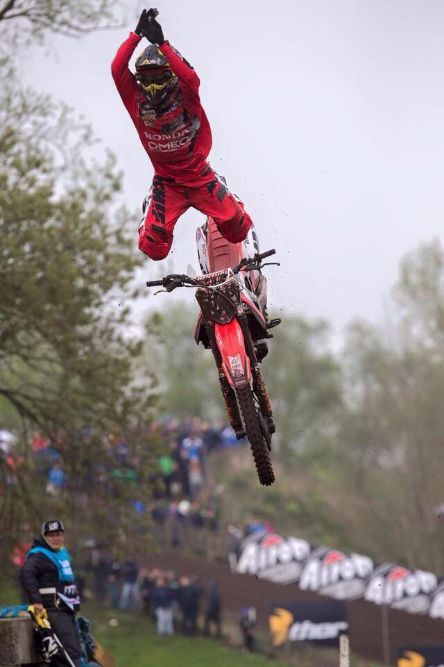 Dopo il volo spaventoso di cui si è reso protagonista al sabato e, come se non bastasse dell’inatteso tuffo nel laghetto al via della prima manche della MX2, abbiamo provato a sentire Tim Gajser per sapere come sta: “Mi fa un po’ male la schiena, ho dei dolori ad una caviglia ed una spalla, ma fortunatamente nulla di rotto, non è stato divertente correre la manche tutto bagnato”.