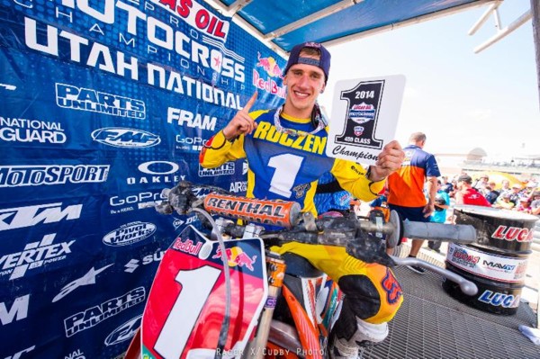 Ken Roczen si aggiudica il titolo 450 2014, amministra il vantaggio e termina alle spalle di Dungey, nonostante un contatto con un pilota lo faccia cadere e correre qualche rischio.