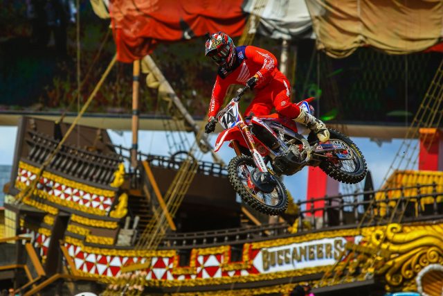 Caduto nella sezione ritmica ha ripostato la frattura del bacino e del coccige. Già sottoposto ad intervento chirurgico, il forte pilota della Honda, termina qui la stagione Supercross.