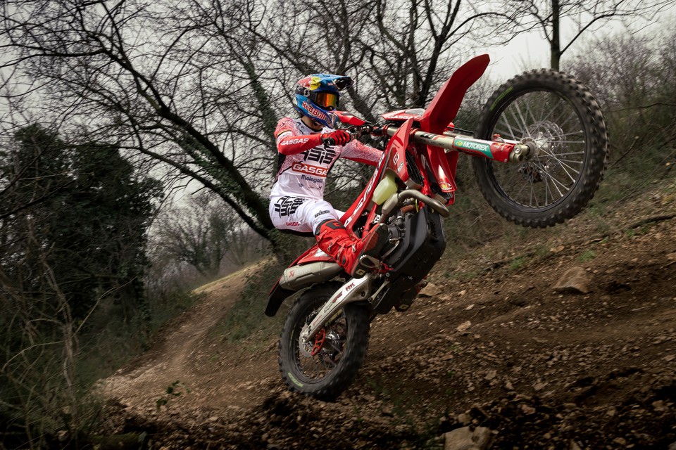 Dopo un inverno di intensi allenamenti sia in moto che in palestra, Andrea Verona è ansioso di dare finalmente l’avvio alla sua stagione 2023, scatenando per la prima volta la sua nuova GASGAS EC 350F. Dopo aver deciso di difendere il suo titolo EnduroGP (cosa che si può fare con una moto di qualunque cilindrata) passando alla classe E2 per questa stagione, Verona ha immediatamente adeguato la sua routine di allenamento alle esigenze della moto più potente.
