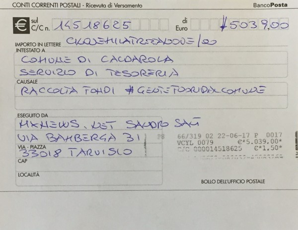 Questa la prova del versamento.