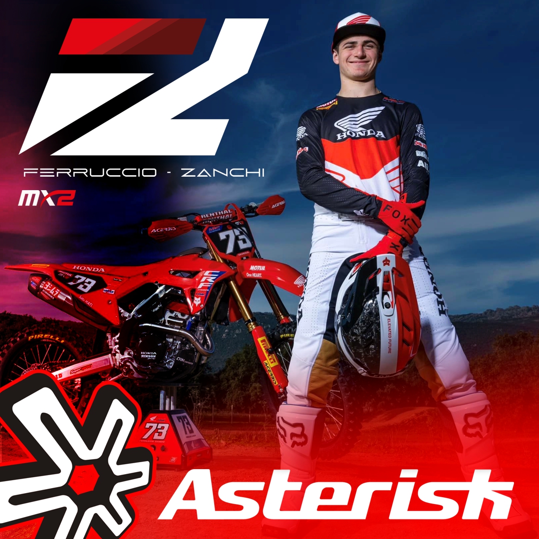 Asterisk accoglie nella Family Ferruccio Zanchi del Team HRC, che insieme al suo compagno di squadra Tim Gajser e Mattia Guadagnini (Husqvarna Factory Racing), sono i testimonials del marchio californiano che nel 1998 ha pensato di realizzare la prima ginocchiera destinata al Motocross.