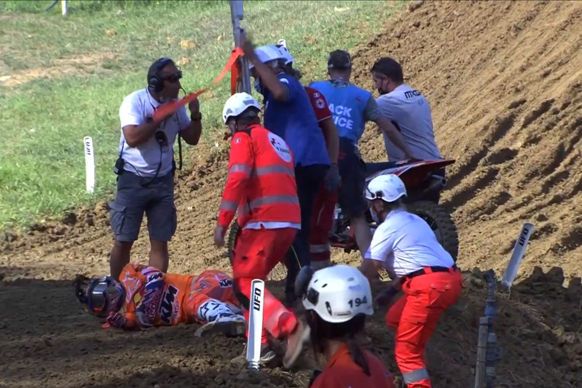 L’olandese stava partendo per il giro “tirato” quando si è cappottato malamente restando a terra. Jeffrey è stato portato al centro medico con una evidente perdita di sangue dal naso. E’ difficile che Herlings possa prendere il via della gara.