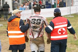 Un´intraversata all´atterraggio di un salto, due sbacchettate e Davide Guarneri è stato proettato in avanti per una gran botta al posteriore. I danni però non sono nelle parti basse ma al ginocchio. Si sospetta che al Pota siano saltati i legamenti del ginocchio e sta già ritornando a casa.
