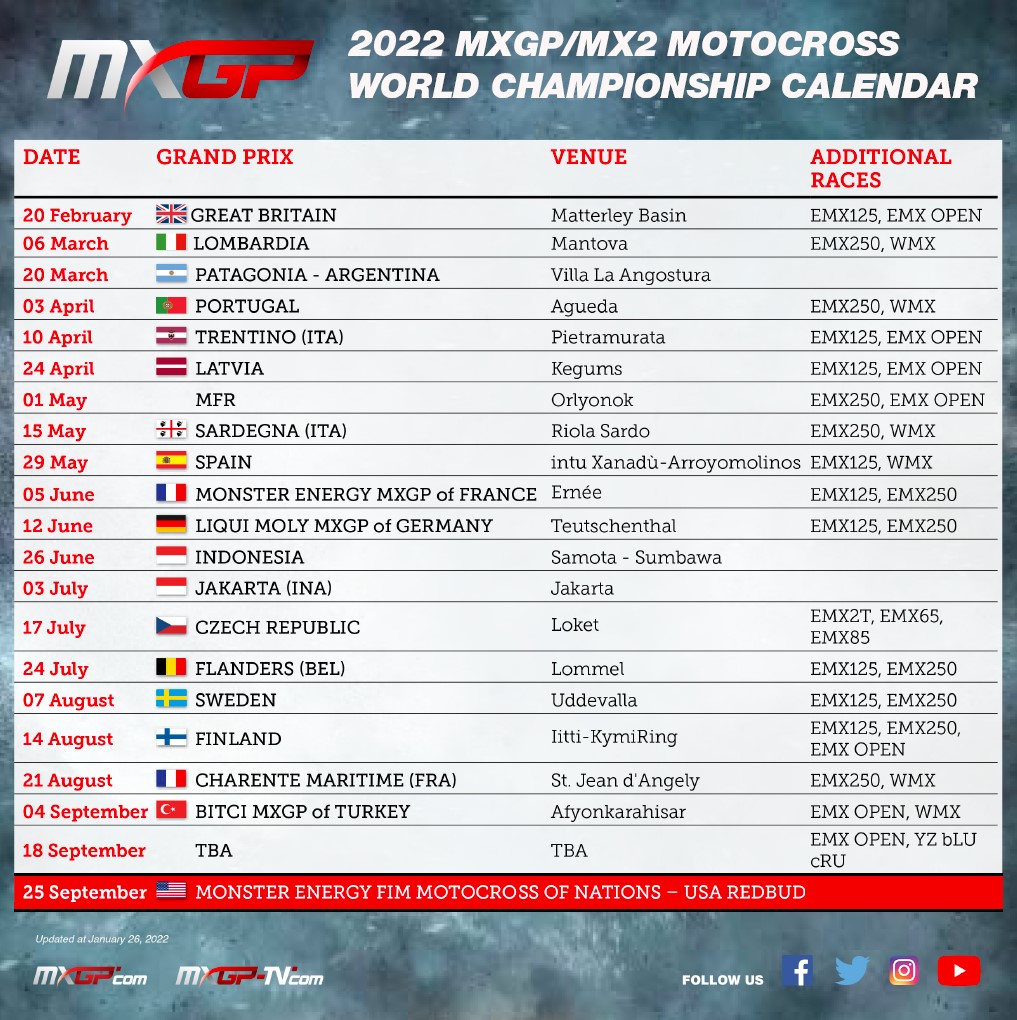 Come anticipato ieri, ecco le modifiche al calendario che prevede sempre l’apertura della stagione a Matterley Basin, la seconda gara a Mantova e poi la prima trasferta in Argentina.