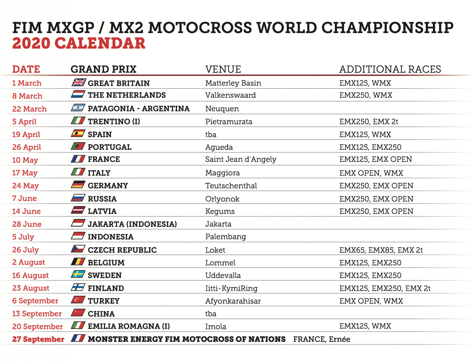 Questo il calendario completo che comprende anche la EMX e la MXW
