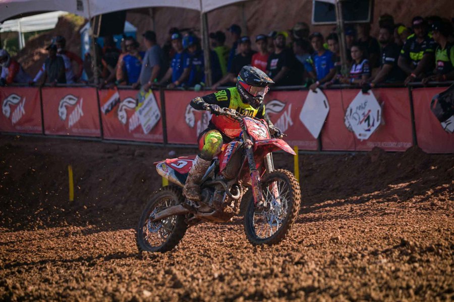 In MX2 dominio netto per Bernardo Tiburcio del Team Honda Racing Brasil, allenato dal nostro tester Roman Jelen che sta tirando fuori il meglio da questo giovane ragazzo, andando su e giù dall’Europa. “Be” ha dilagato in entrambe le manche partendo al comando, per concludere primo sfoderando una guida stilosa, precisa e veloce. In gara 1 ha preceduto il cileno Benjamin Garib (JP Honda Circuit) ed il compagno di squadra Vitor Borba (Team Honda Raciong Brasil) che in settimana si è infortunato ed ha dovuto correre al risparmio.