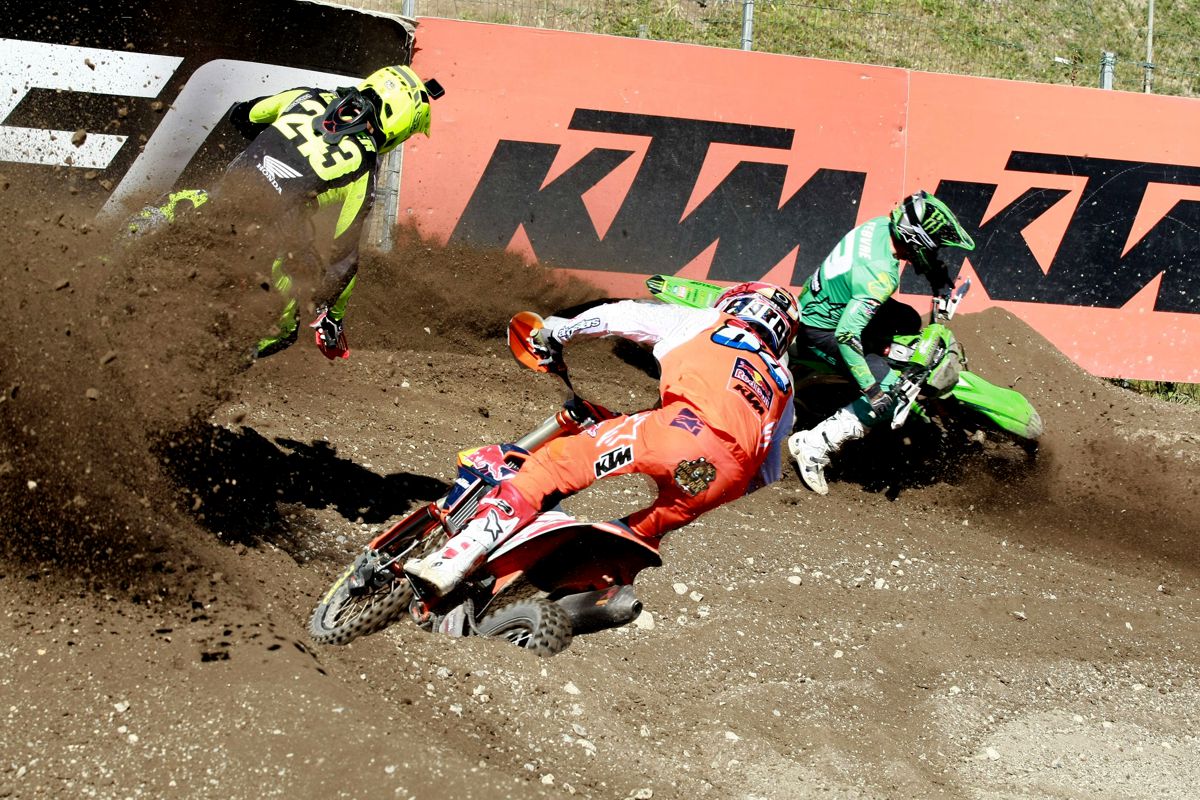 Jeffrey Herlings, Jorge Prado ed Antonio Cairoli, solo piloti del Red Bull KTM Factory Racing e tutti indossano la camicia arancione con i loghi KTM Factory Racing – Red Bull. Cosa trovate di sbagliato se Cairoli lascia passare Herlings? KTM ha il gruppo più numeroso di piloti sotto contratto e la sua forza, proporzionata all’investimento economico, trovate qualcosa di sbagliato in tutto questo?