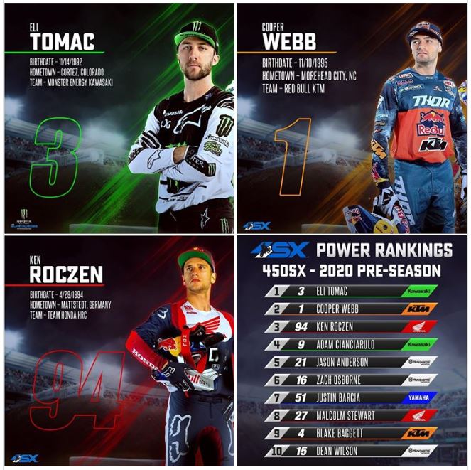 Il Power Ranking (realizzato intervistando 75 addetti ai lavori del Supercross), dice che vincerà Eli Tomac!