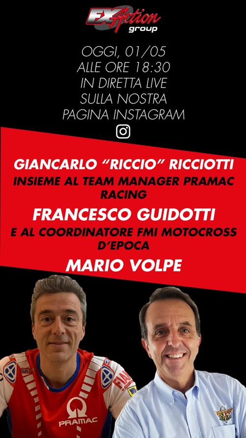 Si parte alle 18:30 dalla pagina Instagram di FX Action con Francesco Guidotti, Team Manager di Pramac Racing, e Mario Volpe coordinatore Motocross d’epoca della FMI.