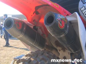 Era montato a Mantova sulla Honda 450 del Team Martin Racing di Brian Jorgensen: il doppio cannone” il carbonio realizzato da Akrapovic, porta un miglioramento del rendimento a tutti i regimi e una minore rumorosità. E´ una novità assoluta ed è ancora in fase di messa a punto. fate click sulla foto per ingrandire l´immagine.