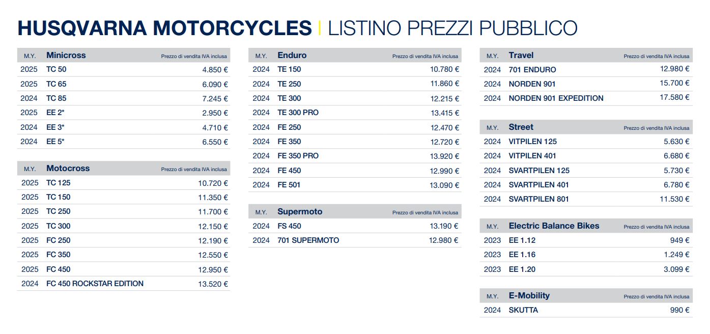 La gamma motocross 2025 è già disponibile presso tutti i Concessionari Husqvarna Motorcycles ai seguenti prezzi: