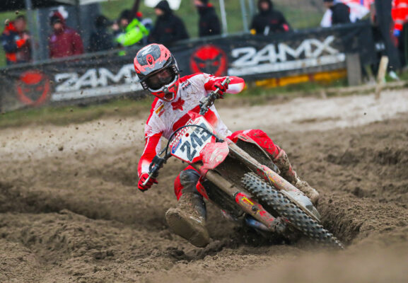 In MX2 grandissima Gara1 per il Campione del mondo 2023 Andrea Adamo (RedBull KTM). Il pilota di Calatafimi, anche lui specialista di Mantova, è partito bene in terza posizione dietro a Sasha Coenen (de Carli KTM) e Valerio Lata (HRC Honda), poi ha passato il romano e all’ottavo giro approfittando del cambio della lente degli occhiali da parte di Coenen lo ha superato andando a vincere la manche. Molto bravo il mantovano Riccardo Marchini (Kros Honda), che a soli 17 anni è riuscito a qualificarsi con il 40° tempo e ha chiuso Gara 1 al 31° posto. Nella seconda manche hole shot per il tedesco Lagenfelder (de Carli KTM), rimasto incastrato nel fango al 5° giro. E’ andato in testa l’olandese Cas Valk (KTM), che ha vinto davanti ad un consistente Andrea Adamo, terzo il promettente romano Valerio Lata. Bene anche Marchini con il 28° posto.