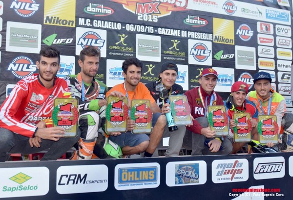 Stagione 2015 conclusa con i Campioni d’Italia 2015 di Motocross che al Galaello sono saliti sul podio per la premiazione finale. Onore al merito per Alessandro Lupino (MX1-Elite), Marco Maddii (300), Manuel Beconcini (MX1-Over 21), Marco Lolli (MX1-Under 21), Stefano Terraneo (MX2-Over 21), Nicholas Lapucci (MX2-Under 21) e Ivo Monticelli (MX2-Elite).