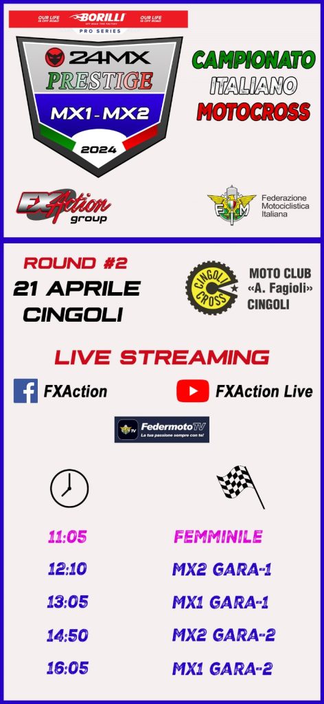 Guarda la seconda prova dell’Italiano MX Prestige MX1-MX2 direttamente sulla nostra pagina Facebook.