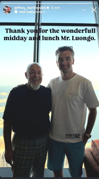 Jeffrey Herlings e Giuseppe Luongo si sono incontrati per un pranzo: JH lo fa sapere attraverso una Instagram Story. Quanto ci sarebbe piaciuto essere un uccellino per ascoltare il dialogo tra una portata e l’altra. Non possiamo sapere di cosa abbiamo parlato, ma certamente un pranzo tra il “patron” della MXGP ed uno dei piloti più rappresentativi del nostro sport, che non si nasconde dietro ad un dito e non si morde la lingua se pensa che sia arrivato il momento di alzare la voce, potrebbe essere l’inizio di qualcosa di estremamente positivo, per lo spettacolo ma soprattutto per la sicurezza dei piloti che faccia crescere il nostro sport.