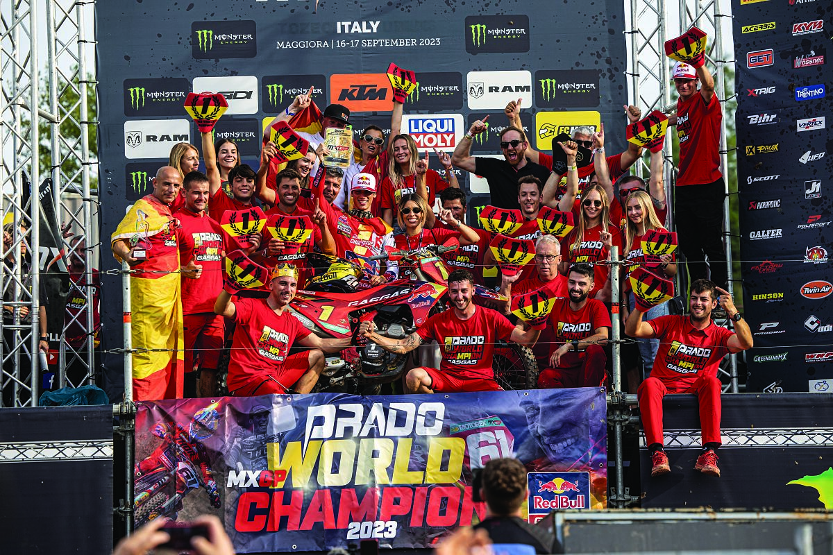 Lo spagnolo è stato davanti a tutti fin dalla prima gara ed ha via via cementato la sua posizione fino a essere incoronato Campione del Mondo a tre manche dalla conclusione del campionato. Questo è anche il primo titolo per la GASGAS in MXGP.