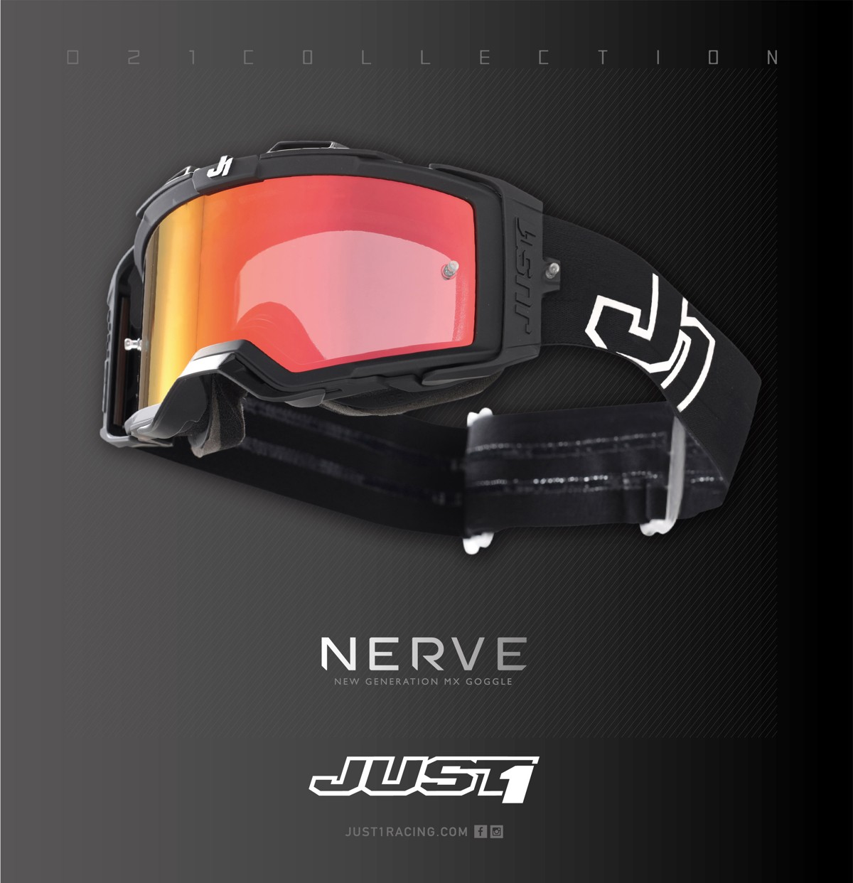 La maschera Nerve è stata progettata e testata nel campionato Mondiale di Motocross da Maxime Renaux (3° classificato nel mondiale MX2 2020). Le caratteristiche principali sono la costruzione a doppio telaio, il Quick-Release Lens System per rendere la sostituzione della lente più rapida e intuitiva, triplo livello di spugna termoformata, noseguard e strap di 50mm. Una vera innovazione sono le lenti ultra HD iniettate da 2 mm che offrono una visibilità sempre nitida grazie ai trattamenti applicati sulla lente (Anti-fog, UV-Block (UV380), Hydrophobic treatment, Anti-impact). Tutto ciò migliora notevolmente l’esperienza di guida del pilota, proteggendolo da fattori esterni che potrebbero comprometterne la visibilità e conseguentemente la performance, oltre che la sicurezza che per JUST1 rimane sempre l’obiettivo principale.