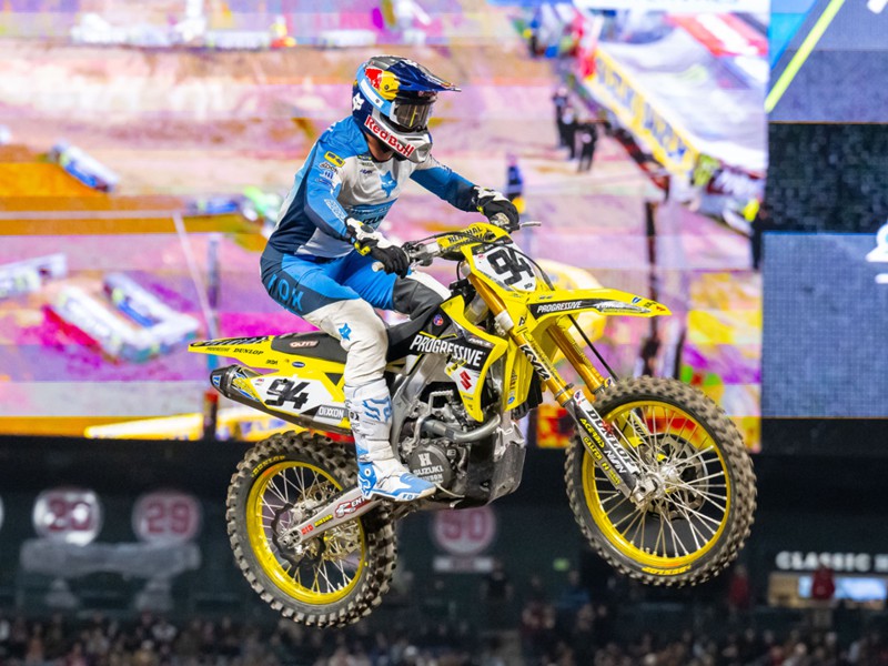 Ken Roczen: “È un sogno! La scorsa settimana ero tornato al truck, pensando che sarebbe bastato poco per condividere la tabella rossa con Eli Tomac. E’ passato molto tempo dall’ultima volta che l’abbiamo avuta, soprattutto per Suzuki. Non sono riuscito a vincere stasera, è stata una gara pazza, abbiamo lottato tutto il tempo ed è stato divertente. Con la pioggia il terreno compatto è diventato scivoloso ma sono riuscito a stare concentrato per tutto il tempo. Dopo aver superato Anderson la prima volta, ho preso una folle e lui mi ha risuperato ma poi ho ripreso la posizione”