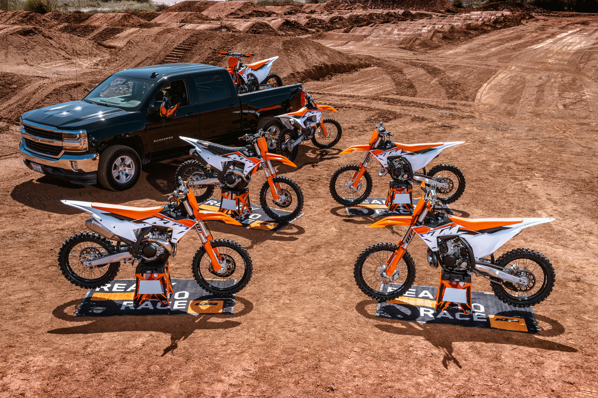 La nuova line-up è composta da 12 modelli, che vanno dalle minicross elettriche e a 2 tempi (50, 65, 85 cm³) fino alle più grandi 250, 350 e 450 cm³ a 4 tempi, passando per le 2 tempi 125, 250 e 300 cm³. Questo vuol dire che un potenziale futuro vincitore dell’AMA 450SX o del Mondiale MXGP può sviluppare tutta la sua carriera in “orange”, dai primi metri nel giardino di casa fino alle ultime curve in testa a una gara nella massima categoria.