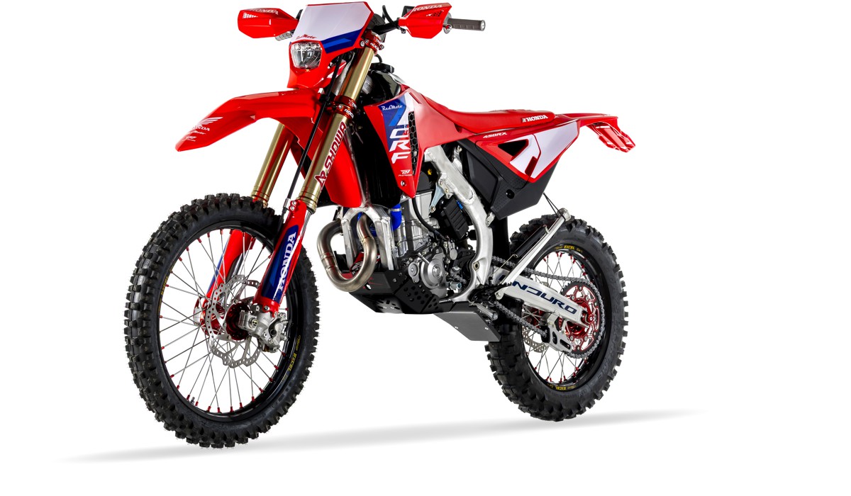 Per la CRF 300RX è stato inoltre introdotto un pistone di nuova configurazione, che rende la moto ancora più facile da gestire, garantendo al tempo stesso maggiore longevità e minori esigenze di manutenzione. La gamma si arricchisce anche di una speciale colorazione dedicata, ispirata ai colori ufficiali HRC, che rende le Enduro RedMoto ancora più distintive e accattivanti.
