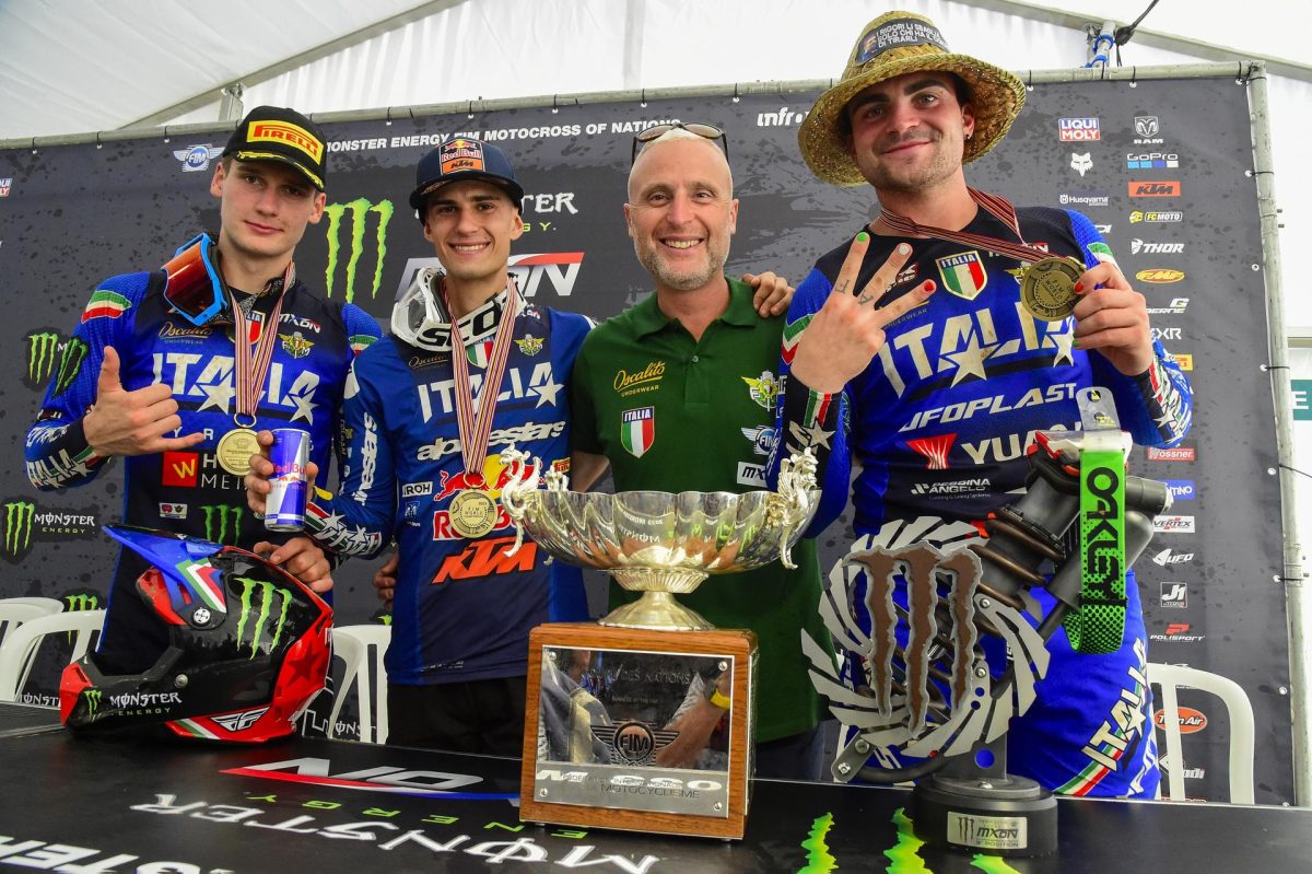 Alberto Forato: 23 anni. Andrea Adamo: 20 anni. Andrea Bonacorsi: 20 anni. Sono loro i piloti che oggi a Ernée, in Francia, hanno conquistato il terzo posto per l’Italia al Motocross delle Nazioni. Un podio entusiasmante per il presente e di valore inestimabile per il futuro, perché testimonia la qualità del vivaio azzurro.