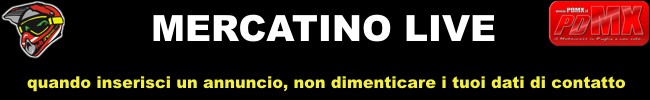 Volete vendere la vostra moto, avete cambiato marca e moto e desiderate vendere i ricambi che avete in garage, volete disfarvi dell´abbigliamento o di un casco o di un paio di stivali? Cerchi una moto da cross? Il Mercatino Live, è appena stato aggiornato, modernizzato e funziona come un forum in cui gli utenti possono inserire gli annunci e scambiarsi informazioni.