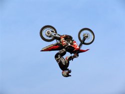 Qualche tempo fa si parlava di chi avrebbe provato a flippare con le moderne 4T, oggi siamo ci troviamo a parlare di Stefano Minguzzi, in arte MinX, che nei giorni scorsi ha eseguito in back flip addirittura in sella all´Aprilia bicilindrica, essendo così il primo al mondo ad eseguire il trick con questo tipo di moto. Dopo due tentativi nella pool, tutti andati a buon fine ha optato per provare subito su terra ma, visto l´enorme potenza della moto ha deciso di spostare la rampa a
