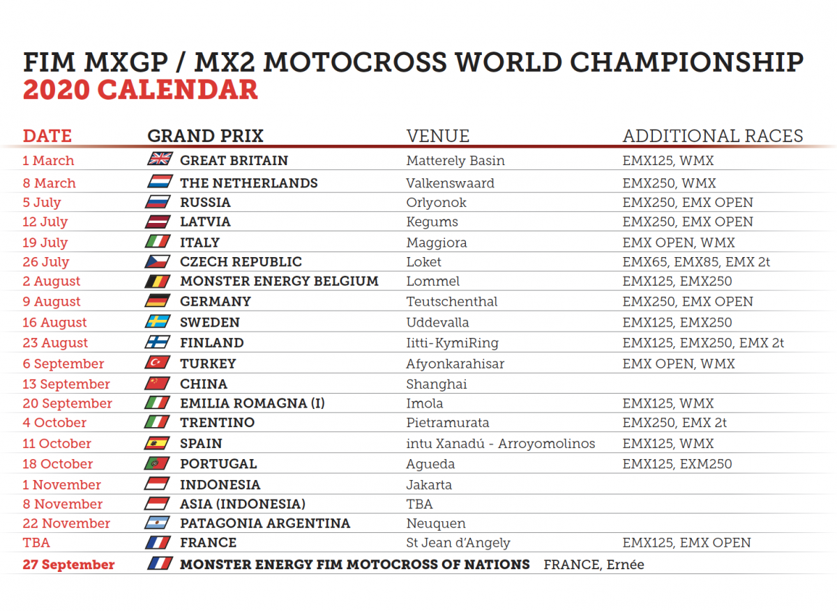 Infront Moto Racing comunica una nuova variazione del calendario MXGP 2020.