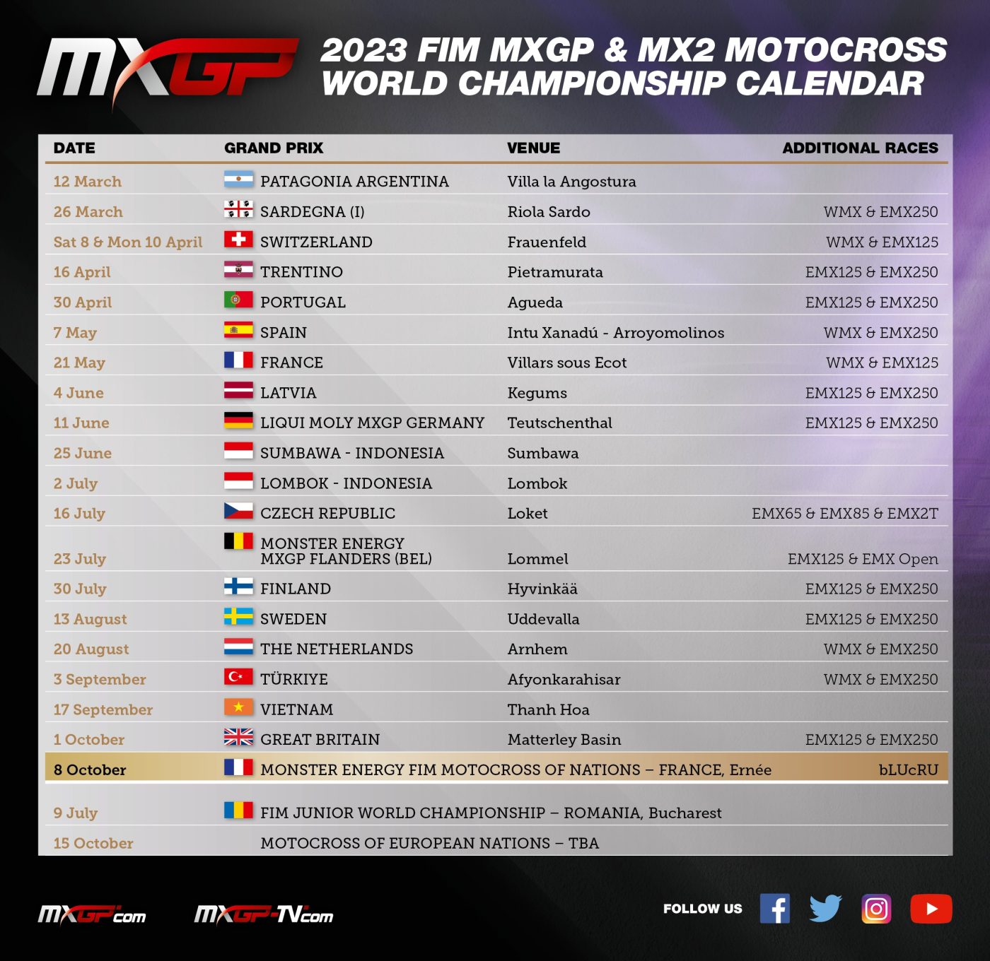 La data del 1 Ottobre prende la location di Matterley Basin, ma anche la data del MXoN di Ernèe viene anticipata al 8 Ottobre al posto del 22.