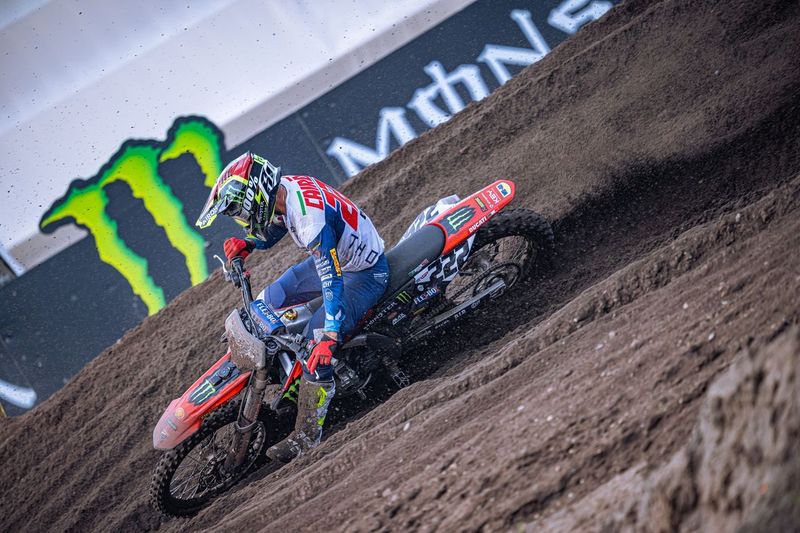 Antonio Cairoli: ” Portiamo a casa un ottimo test per la moto. Prima del GP abbiamo fatto tre settimane di test tra Belgio ed Olanda, ma le condizioni delle piste erano molto differenti da quello che abbiamo trovato oggi. Il nostro obiettivo era di testare la Desmo450 MX in condizioni estreme e le mie sensazioni sono state molto positive. Sabato abbiamo ottenuto un settimo posto, fantastico per una moto nuova come la nostra. Domenica non sono partito bene in nessuna delle due manches, ma in gara due ero nei top 10 e sono soddisfatto. Dopo tre anni lontano dai GP non è stata una gara facile per me, specialmente su un tracciato così impegnativo.”