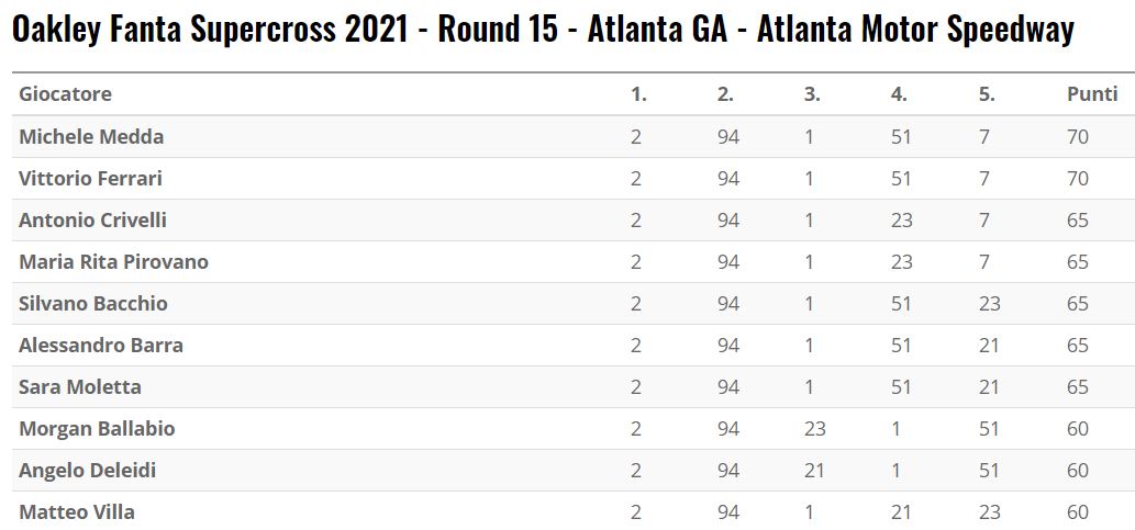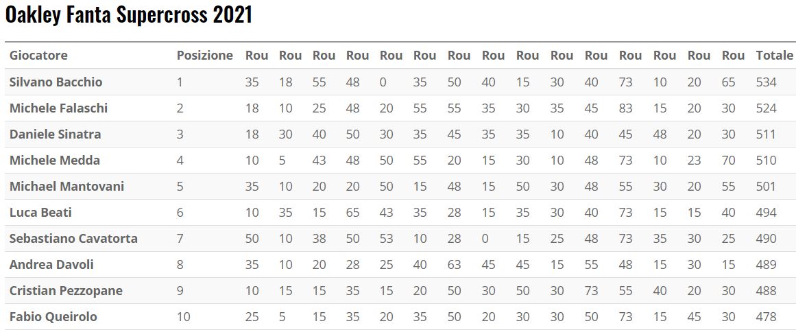 Classifica aggiornata.