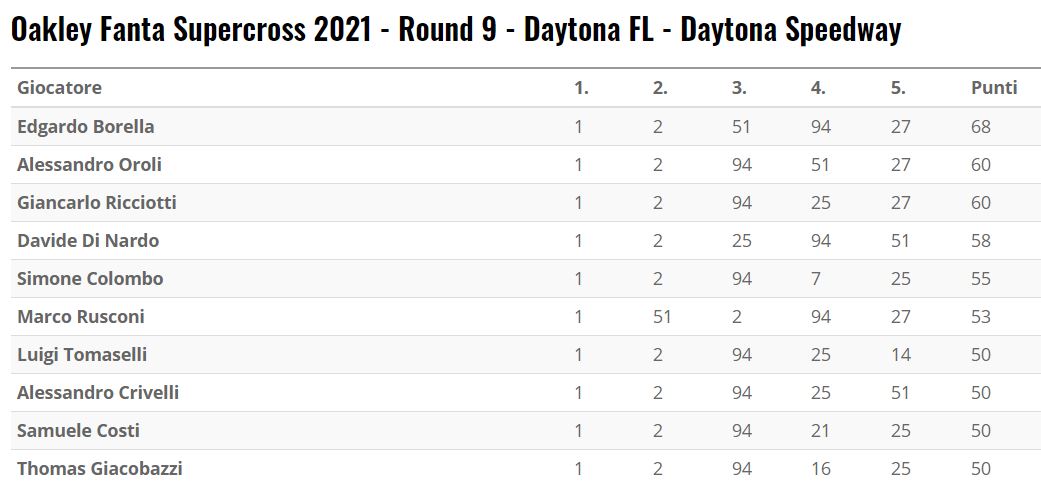 Classifica aggiornata.