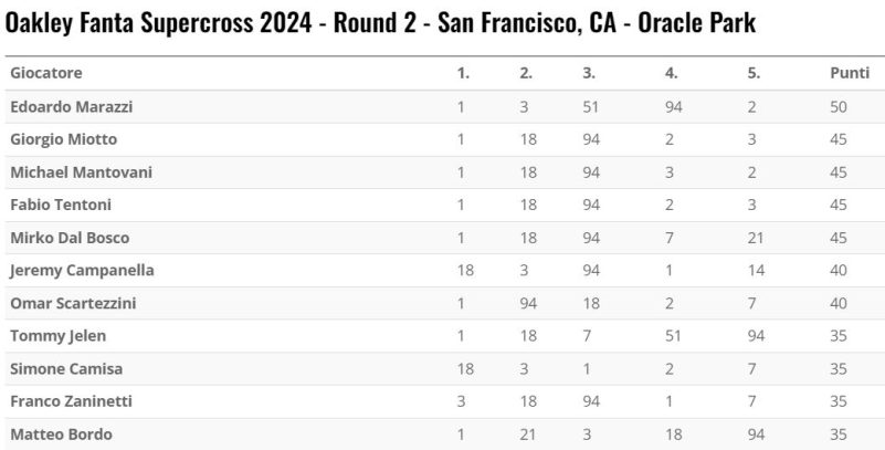 Ecco la classifica del secondo Round del Oakley Fanta SX.