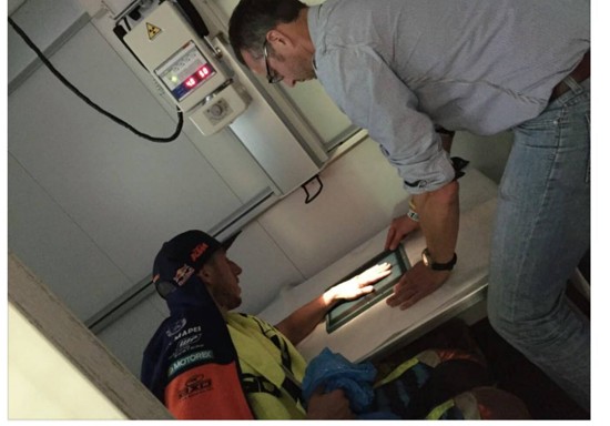 Un po’ più grave la situazione per Tony che ha riportato una microfrattura alla mano sinistra, che costringerà il siciliano a una decina di giorni di stop. Dalla violenza della caduta, poteva andare peggio. Anche qui niente comunicato, ma la foto ed il commento appaiono su Facebook.