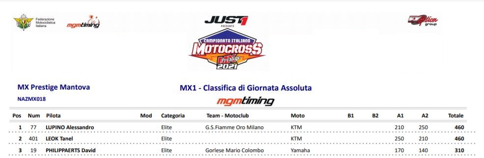No… non siamo del tutto rimbambiti, ma la classifica non è fasulla, è verissima! Però non è quella di una gara del 2010, è di ieri, 25 Aprile 2021, seconda prova del Campionato Italiano Motocross Prestige corsa a Mantova.