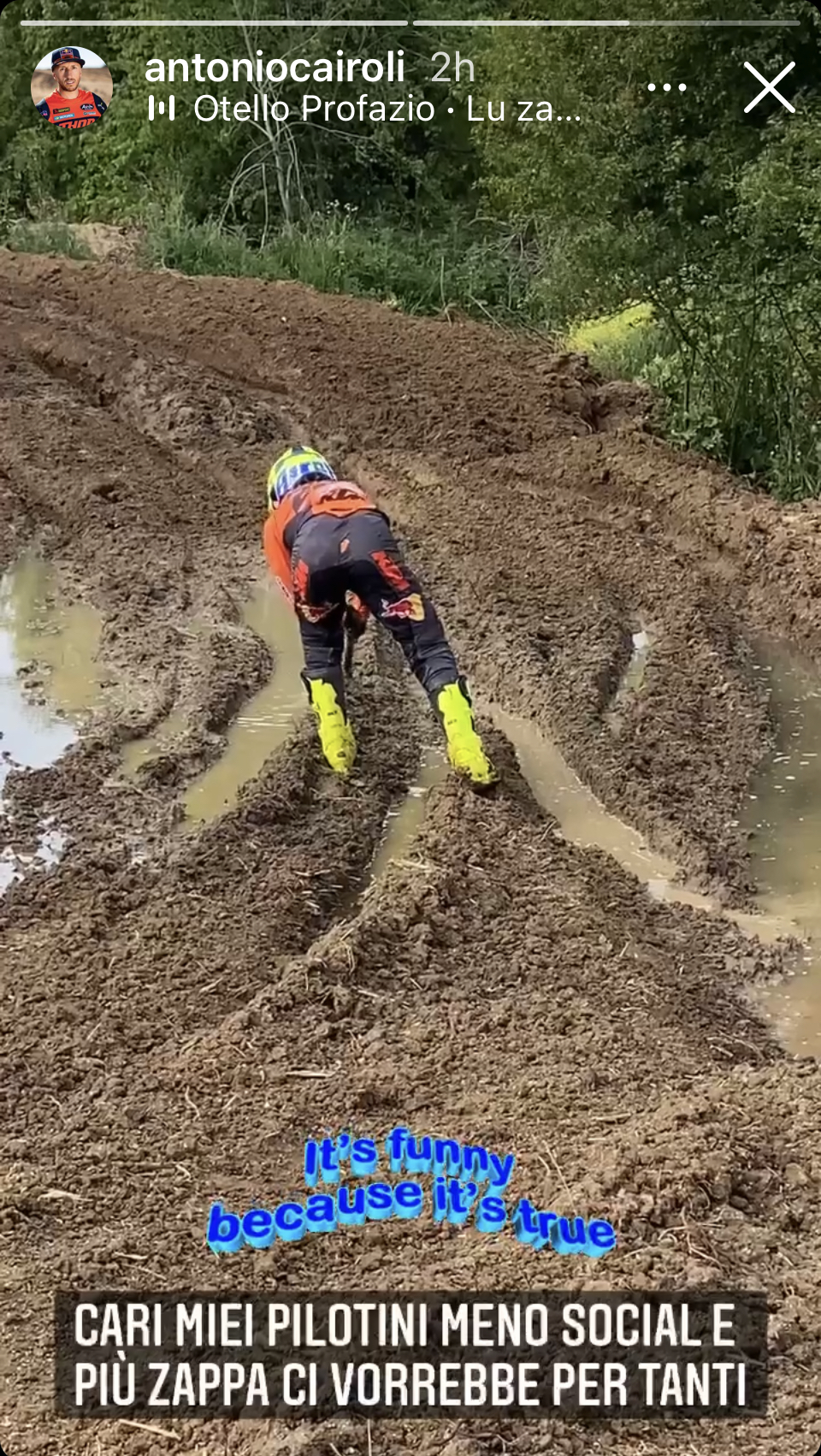 Oggi, dall’alto dei suoi 9 titoli di Campione del Mondo Motocross, Tony Cairoli pubblica questa storia e scrive “cari miei pilotini meno social e più zappa ci vorrebbe per tanti” e non possiamo che dargli ragione.