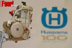 Il propulsore è in assoluto la maggiore novità: piccolissimo e dal peso attorno ai 22kg senza olio e carburatore, ha distribuzione a bialbero e quattro valvole. Husqvarna dichiara una potenza di 37 CV, ma va tenuto in considerazione che il propulsore gira al banco da pochi mesi e che lo sviluppo in pista è iniziato solo recentemente, quindi esistono ampissimi margini di miglioramento. Il cambio è a 5 marce, con frizione idraulica e sistema antisaltellamento.