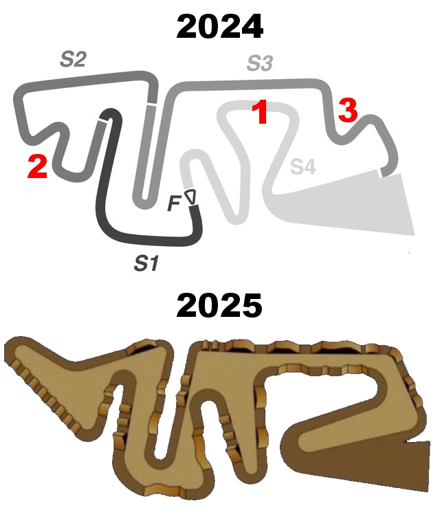 Qui di seguito, il tracciato in versione GP 2024 e quello che ospiterà il GP 2025, sempre se i “rumors” si riveleranno attendibili.
