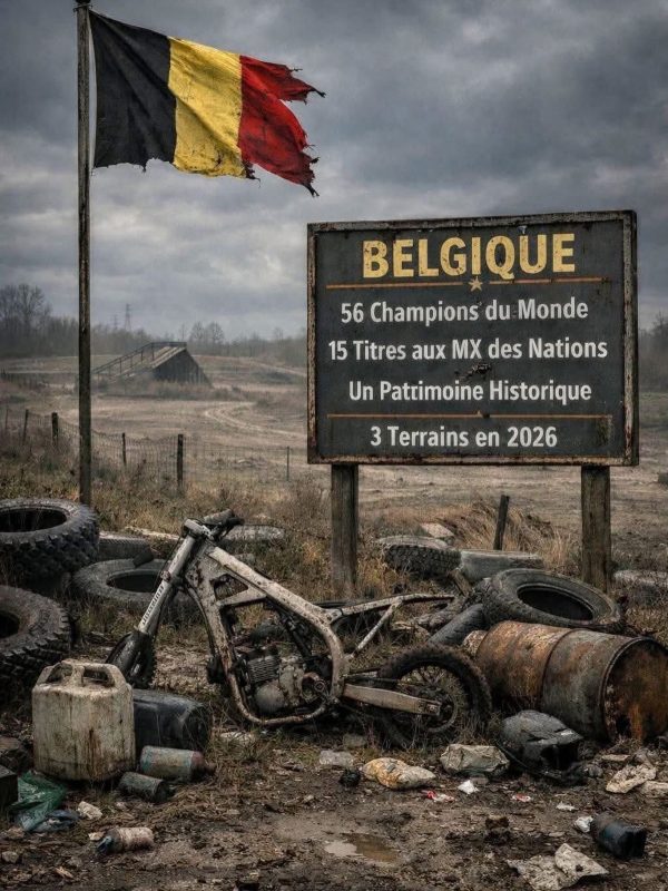 Stefan pubblica un’immagine desolante e provocatoria nella quale si nominano 56 titoli mondiali, 15 vittorie al MXoN e solo tre piste esistenti che al momento dovrebbero essere Lommel, Olmen e Genk, contro le decine e decine di piste esistenti fino a pochi anni fa.