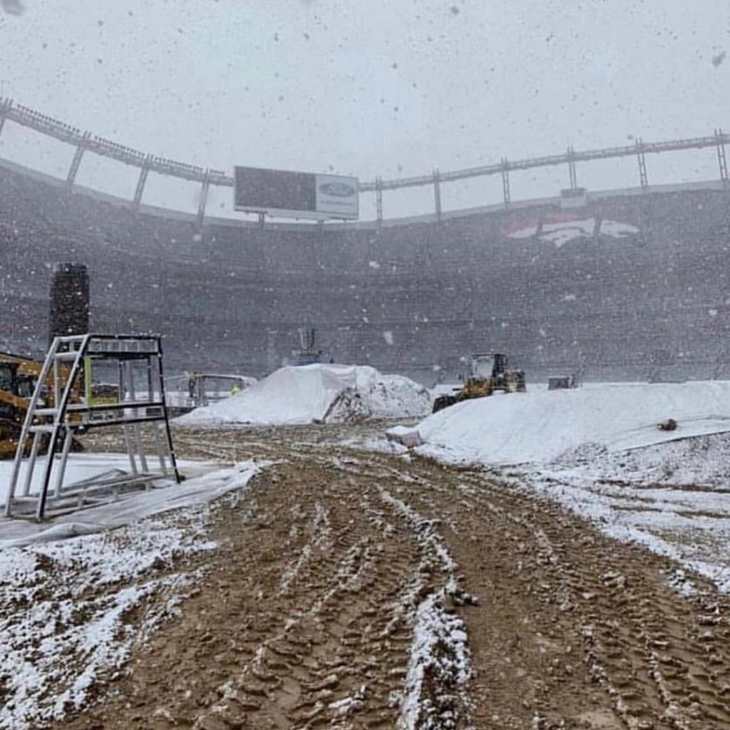 Siamo a Denver in Colorado al Broncos Stadium, stadio scoperto che presenta già i primi problemi con il meteo ed una inattesa nevicata che ha imbiancato il tracciato. Per questa sera, le previsioni di qualche giorno fa, garantivano tempo stabile, purtroppo ora sono cambiate e non si sa ancora bene cosa attendersi se non freddo pungente.