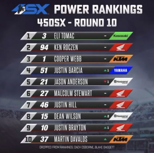 Anche questa settimana abbiamo il Power Ranking aggiornato con il contributo di 75 addetti ai lavori del Supercross.