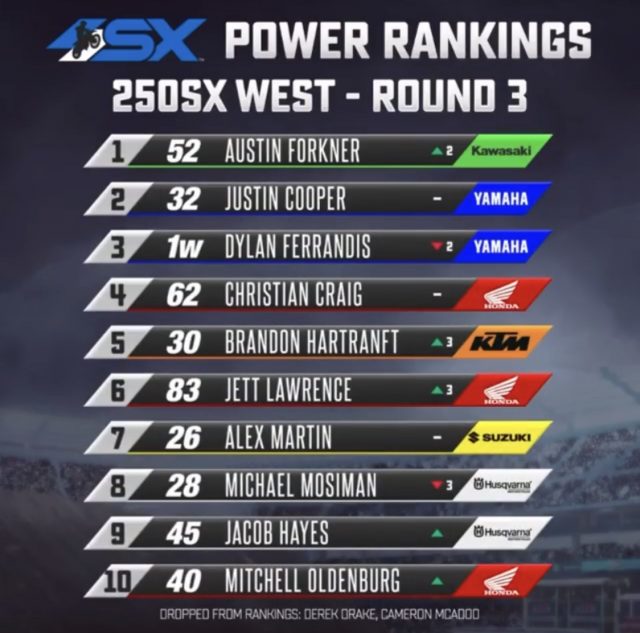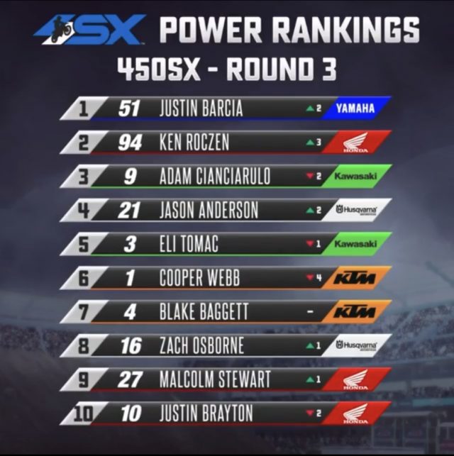 Continua l’aggiornamento delle opinioni dei 75 addetti ai lavori del Supercross, ed anche questa settimana abbiamo il Power Ranking.