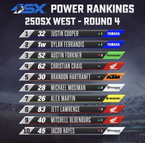 Continua l’aggiornamento delle opinioni dei 75 addetti ai lavori del Supercross, ed anche questa settimana abbiamo il Power Ranking.
