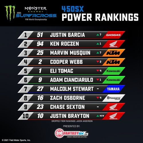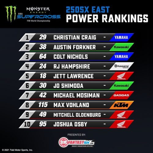 A 75 persone che ruotano nell’orbita del Supercross, viene chiesto di stilare una classifica personale del Supercross sia della 450 che della 250. Elaborando i dati racconti viene preparato il Power Ranking.
