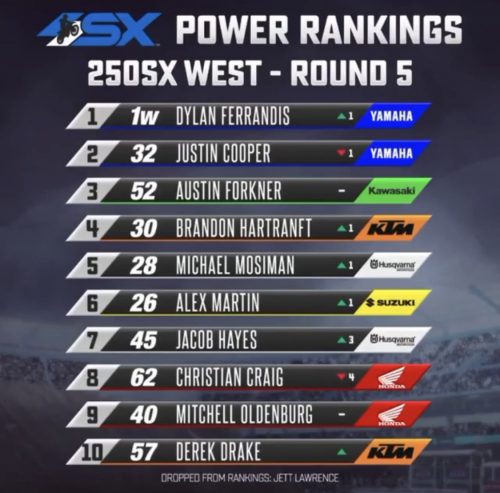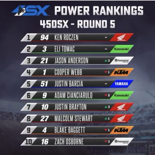 Anche questa settimana abbiamo il Power Ranking aggiornato con il contributo di 75 addetti ai lavori del Supercross.