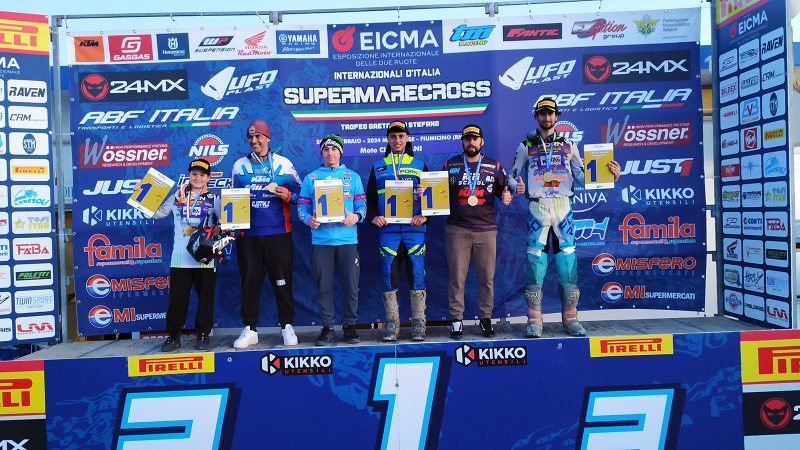 Nella Pro Mx2 il campione è Antonio Mancuso (KTM – Valle del Belice), che aggiunge un altro titolo Supermarecross alla sua già ricchissima carriera. Il pilota siciliano torna al vertice del campionato su sabbia dopo l’ultimo successo del 2019 e lo fa vincendo l’ultima giornata, davanti a Davide Brandini (KTM – Erresse) e Giuseppe Zangari (Husqvarna – Dmx). Nella classifica finale, Mancuso precede Andrea Roberti (KTM – Pardi) e Brandini.