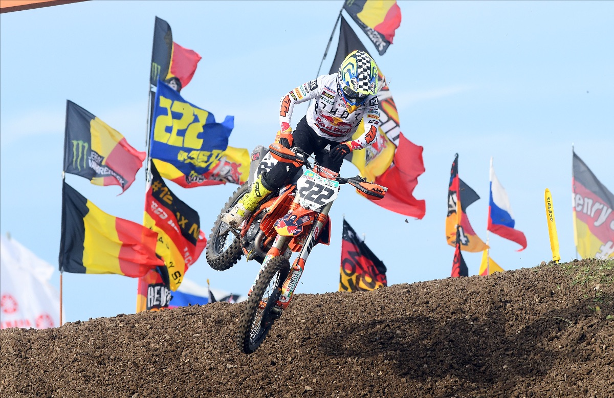 Dopo un anno di sosta, la pista del Talkessel, a Teutschenthal, è tornata ad ospitare il Gran Premio di Germania. La gara, giunta alla venticinquesima edizione si disputa qui dal lontano 1971 e Antonio Cairoli qui ha conquistato alcune delle sue vittorie più belle, legando indissolubilmente il suo nome a quello del tracciato tedesco, vincendo in cinque occasioni e trionfando con una doppietta nel Nazioni del 2013. Giunto in condizioni precarie dopo la caduta rimediata in prima manche a Mantova sette giorni fa e dopo quella di Riola di due settimane prima, Cairoli ha comunque voluto onorare l’impegno, cercando di limitare il più possibile i danni in ottica campionato. Dopo aver ottenuto con la sua KTM 450SX-F l’ottavo tempo nelle prove cronometrate, Tony si è schierato al cancello di partenza di gara uno, transitando quarto al termine del primo giro. Nel corso del quinto giro, a causa di una uscita di pista, il pilota del team KTM Red Bull Factory Racing perdeva una posizione, riuscendo comunque a contenere gli attacchi del pilota che lo seguiva, transitando sotto la bandiera a scacchi quinto e sofferente al costato. Schierato nuovamente al cancello di partenza, nonostante il crescente dolore, il nove volte Campione del Mondo scattava nuovamente bene ma perdeva diverse posizioni nel corso dei primi due giri a causa del dolore, riuscendo a risalire in decima posizione nei passaggi successivi, conservando il piazzamento fino al traguardo e concludendo il Gran Premio al settimo posto assoluto. Questa settimana che precede il Gran Premio di Francia, sarà dedicata al recupero, in vista delle prossime sette gare consecutive che chiuderanno la stagione.